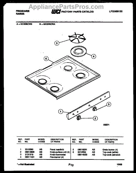 Parts for Frigidaire GC32BCW4: 03 - Cooktop Parts