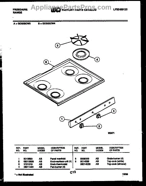 Parts for Frigidaire GCG32CL3: 03 - Cooktop Parts