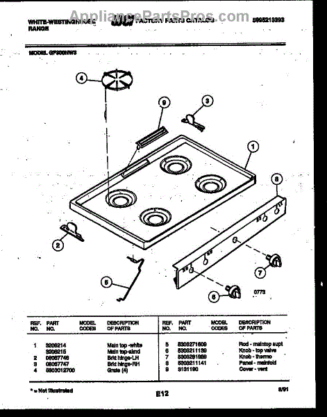 Parts for Frigidaire GF300NW3: 03 - Cooktop Parts