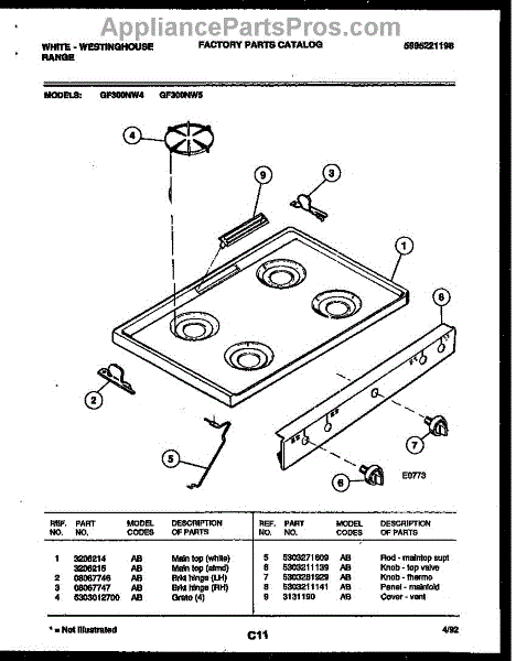 Parts for Frigidaire GF300NW5: 03 - Cooktop Parts