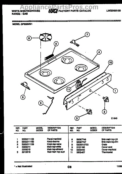 Parts for Frigidaire GF620NW1: 03 - Cooktop Parts