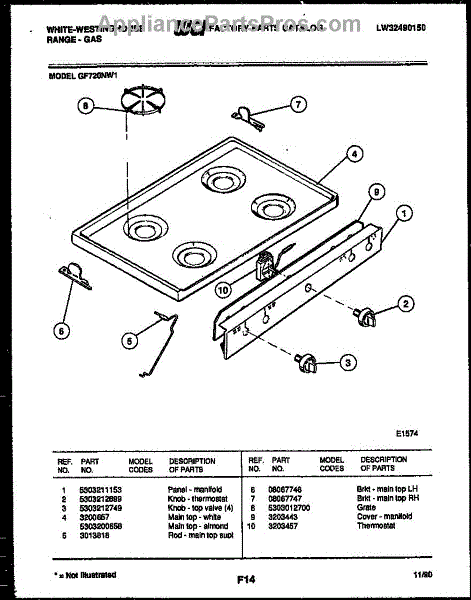 Parts for Frigidaire GF720NW1: 03 - Cooktop Parts