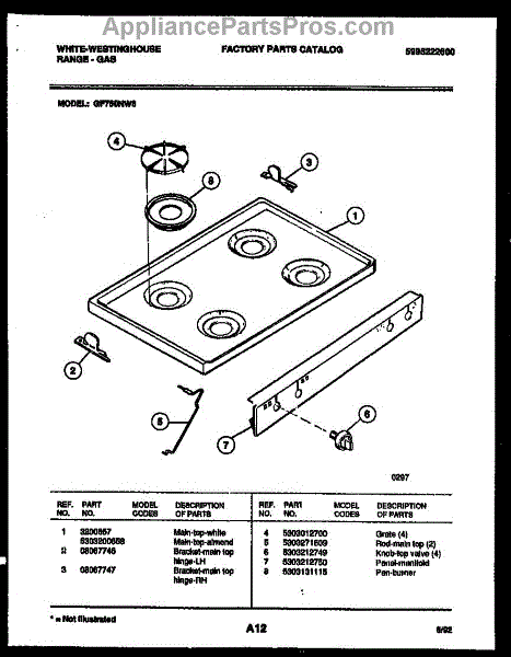 Parts for Frigidaire GF750NW6: 03 - Cooktop Parts