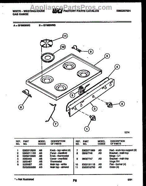 Parts for Frigidaire GF860ND3: 03 - Cooktop Parts