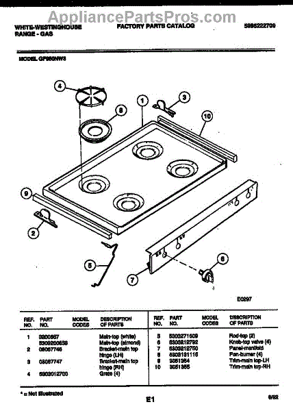 Parts for Frigidaire GF950NW3: 03 - Cooktop Parts