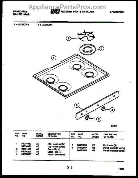 Parts for Frigidaire GG26CL3: 03 - Cooktop Parts