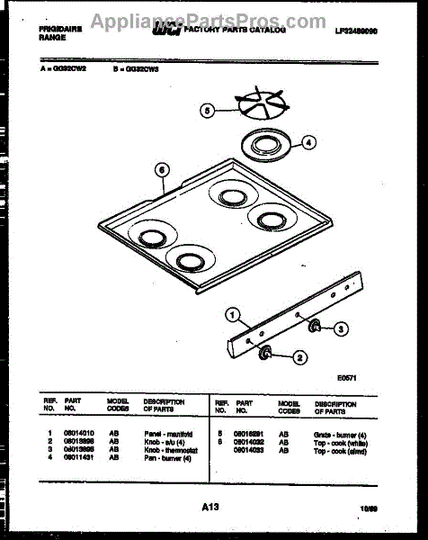 Parts for Frigidaire GG32CW2: 03 - Cooktop Parts