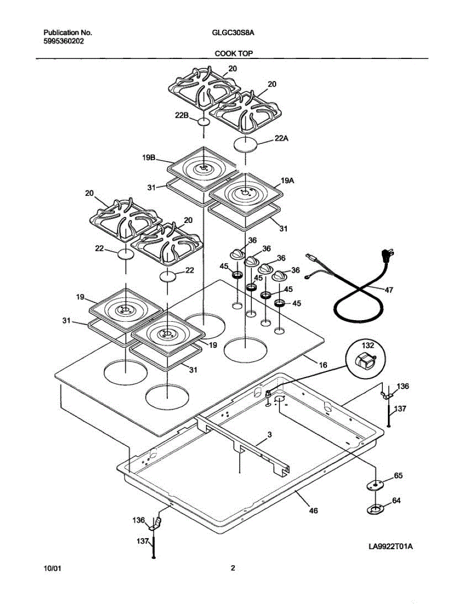 Strain relief retainer secures electrical cables at the cooktop connection point. Replace if cracked, broken, or missing to protect wiring integrity.