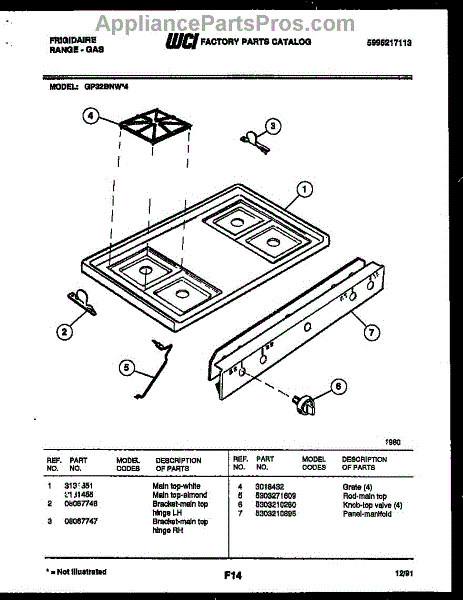 Parts for Frigidaire GP32BNW4: 03 - Cooktop Parts