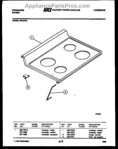 Parts for Frigidaire R30AF4: 03 - Cooktop Parts