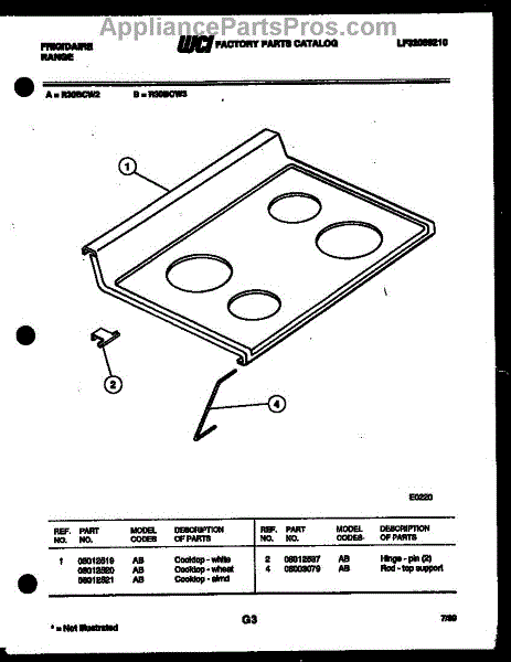 Parts for Frigidaire R30BCW3: 03 - Cooktop Parts