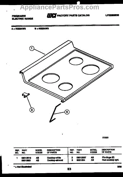 Parts for Frigidaire R32BAL3: 03 - Cooktop Parts