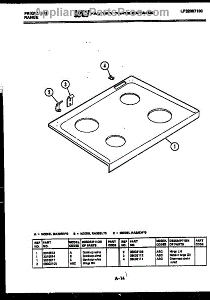 Parts for Frigidaire RA30EH0: 06 - Cooktop Parts