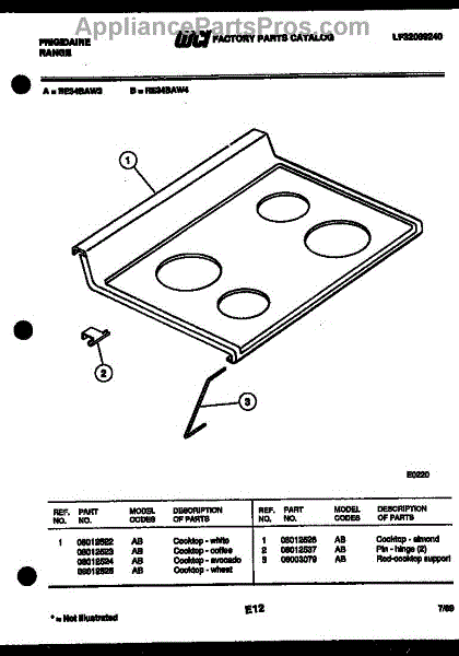 Parts for Frigidaire RE34BAF3: 03 - Cooktop Parts