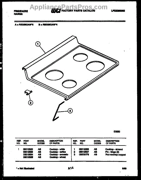 Parts for Frigidaire REG36CAW4: 03 - Cooktop Parts