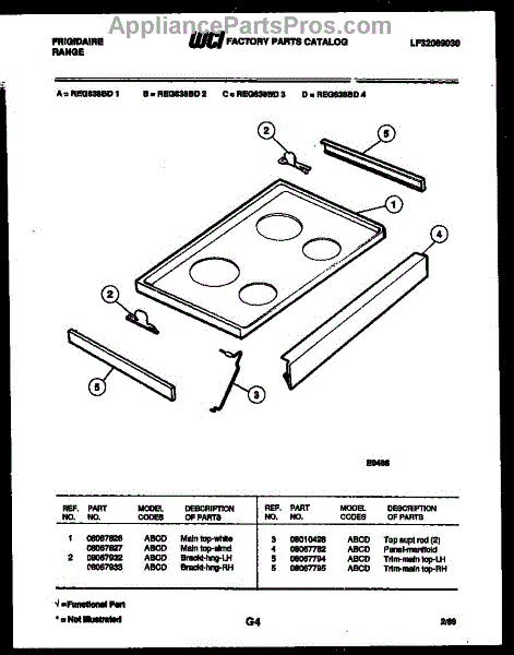 Parts for Frigidaire REG638BDW3: 04 - Cooktop Parts