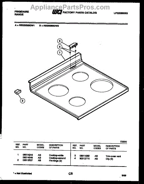 Parts for Frigidaire REGS38BDW2: 04 - Cooktop Parts