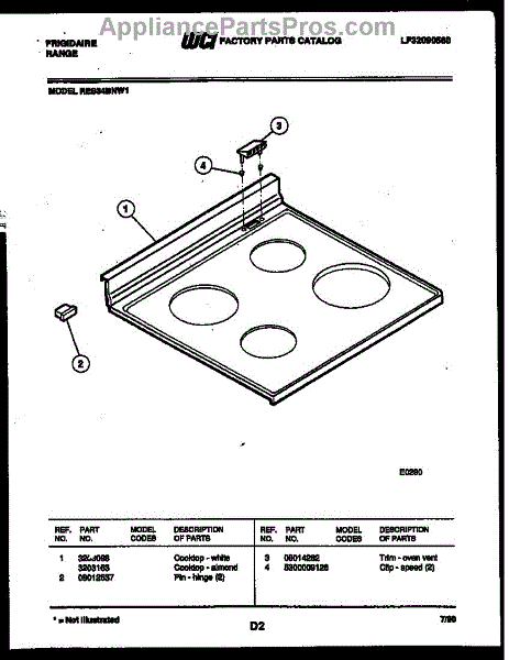 Parts for Frigidaire RES34BNW1: 03 - Cooktop Parts