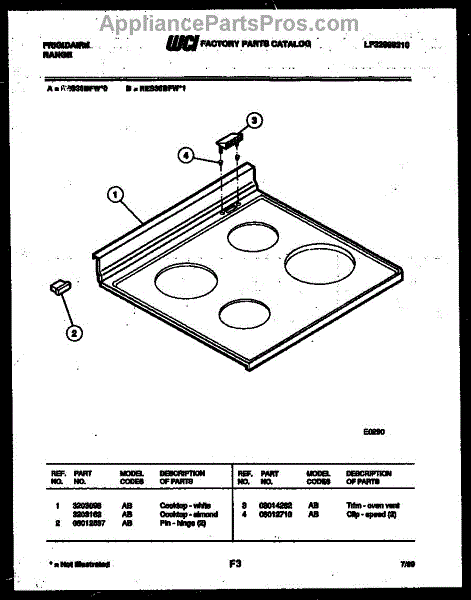 Parts for Frigidaire RES36BFW1: 03 - Cooktop Parts