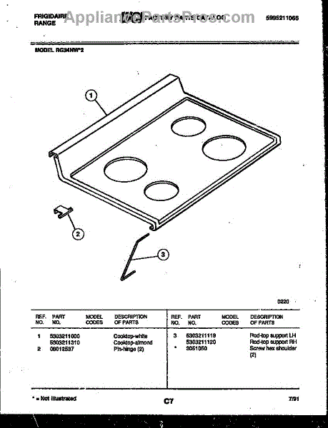 Parts for Frigidaire RG34NW2: 03 - Cooktop Parts