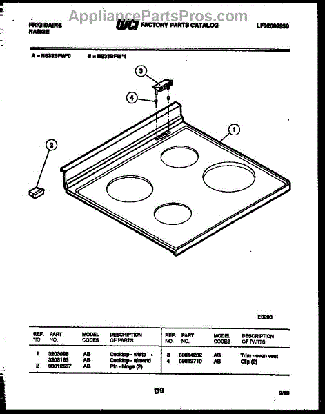 Parts for Frigidaire RS33BFL0: 03 - Cooktop Parts