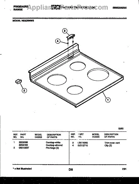 Parts for Frigidaire RS33BNW2: 03 - Cooktop Parts