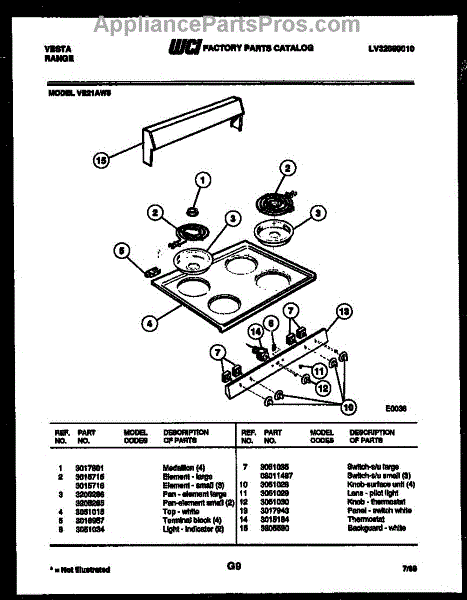 Parts for Frigidaire VE21AW5: 02 - Cooktop Parts