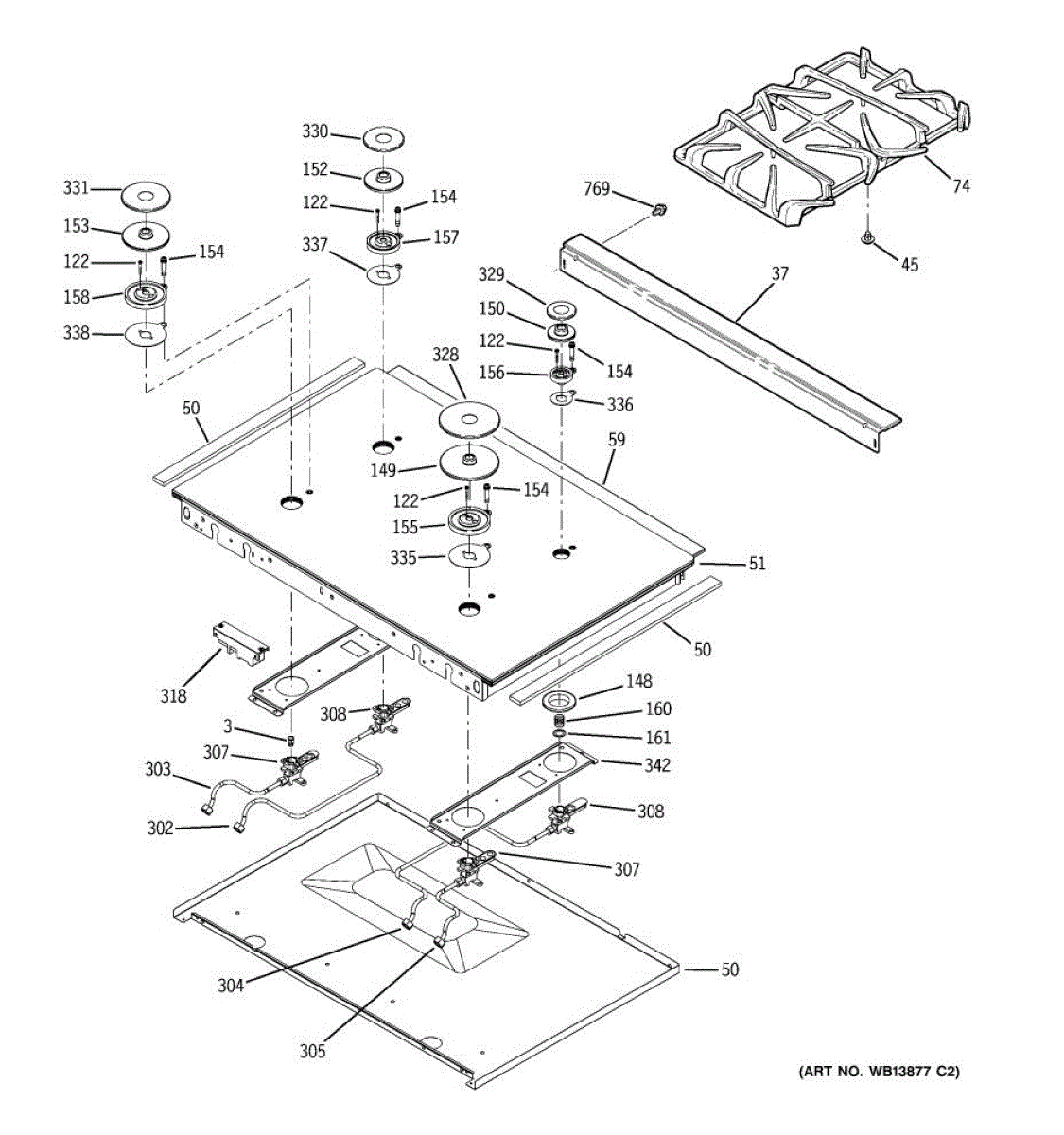 Seals burner assembly to cooktop surface, preventing gas leaks and ensuring proper ignition. Replace if cracked, brittle, or damaged during cleaning.