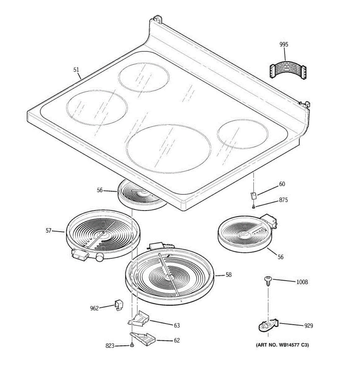 Parts for Ge JB640DR3CC: 02 - Cooktop Parts