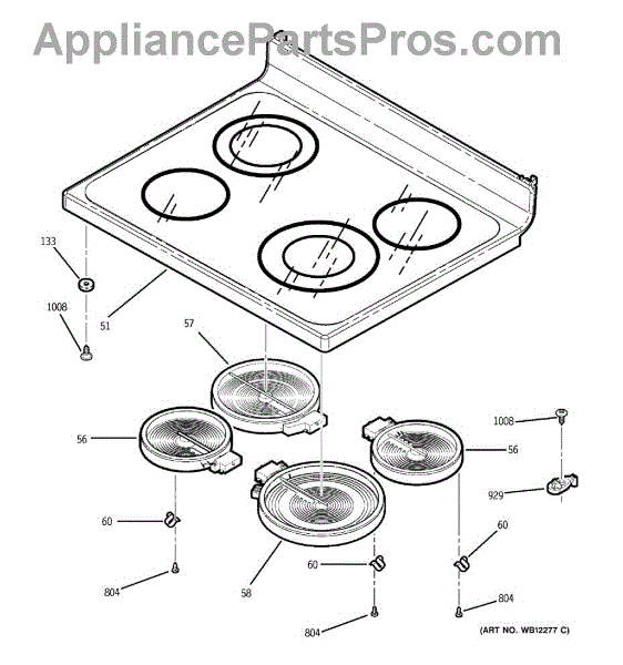 The Medium Haliant Element is an OEM part for GE cooktops. This radiant heating element is located beneath the ceramic cooktop surface and provides a medium-sized heating area for cooking various dishes. This element measures 6 Inches. Causes of a bad haliant element can include electrical issues such as short circuits, wear and tear from regular use, or physical damage from impacts or overheating. Symptoms of a bad medium haliant element include: