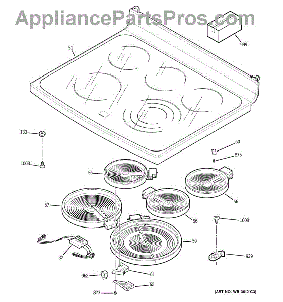 This radiant surface element powers the tri-ring burner beneath your glass cooktop. Replacing a failed unit restores reliable, selectable heating across the rings so cookware warms evenly and the burner responds properly to the control. What it does: