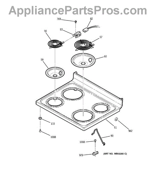 Parts for Ge JBP25DK4CT: 02 - Cooktop Parts