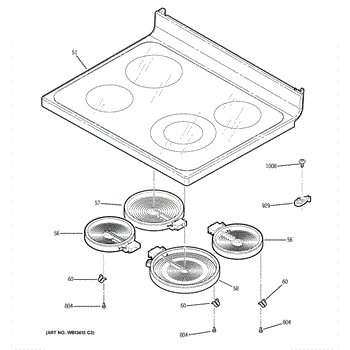 Glass cooktop assembly for electric ranges. Replaces cracked, broken, or damaged glass surfaces. Installs on top of range to restore cooking surface.