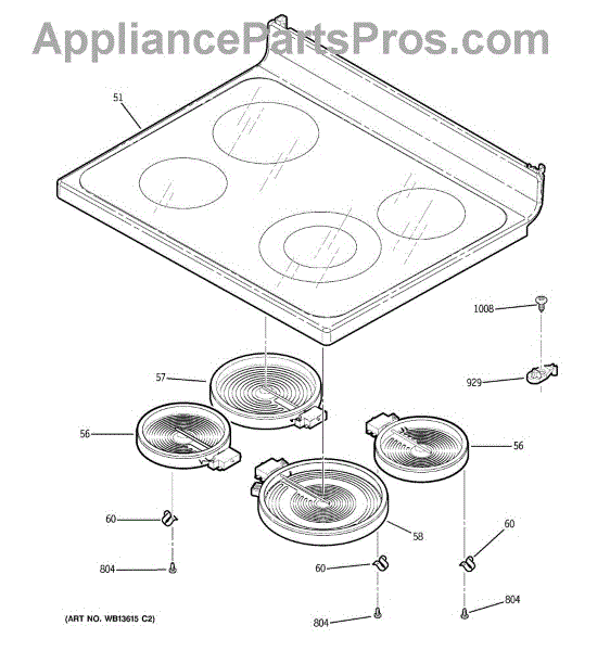 Glass cooktop surface for ranges. Replaces cracked, chipped, or broken glass tops on radiant electric ranges. Complete surface assembly installs on top.