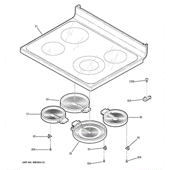Parts for Ge JBP68HK4WW: 02 - Cooktop Parts