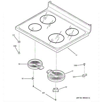 Parts for Ge JBP68WD2WW: 02 - Cooktop Parts