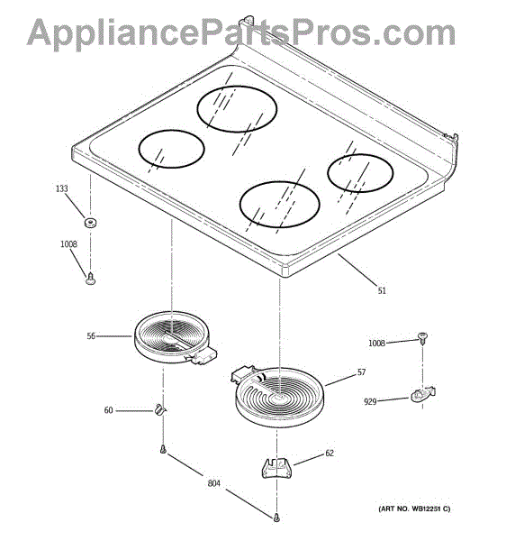 Parts for Ge JBP69BD1BB: 02 - Cooktop Parts