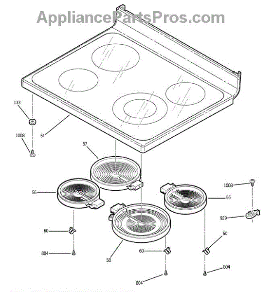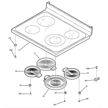 Parts for Ge JBP71WF1WW: Cooktop Parts