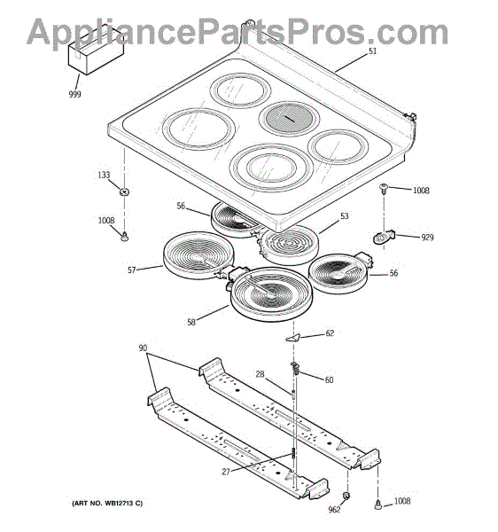 Burner only heating on small ring or not heating at all? This radiant element heats cookware through the glass cooktop surface. DIY replacement in 1-2 hours.