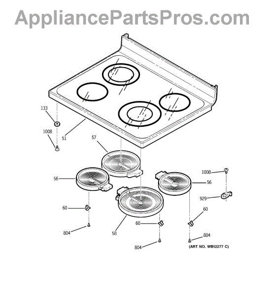 Parts for Ge JCBP79WK1WW: 02 - Cooktop Parts
