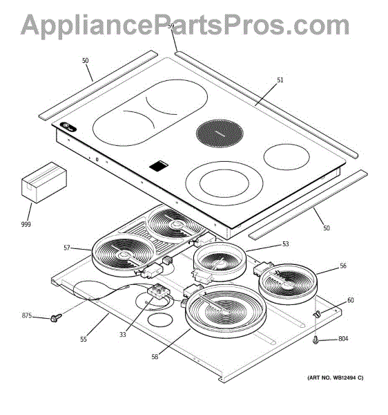 Parts for Ge JD968BF1BB: 02 - Cooktop Parts
