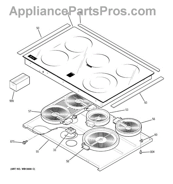 Parts for Ge JD968TK2WW: 02 - Cooktop Parts