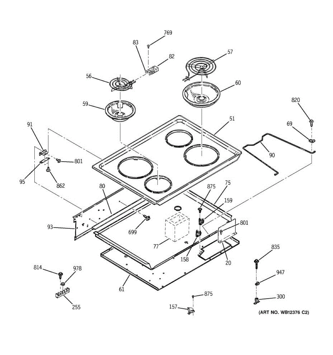 Spacer for cooktop installation. Replaces worn, cracked, or missing spacers that maintain proper clearance between components during mounting.