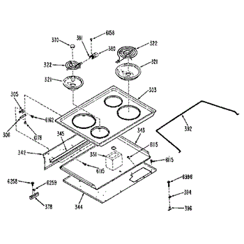 Parts for Ge JDP37G0L2: Cooktop Parts