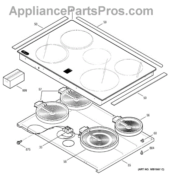 The Large Haliant Element is an OEM replacement part for GE ranges/cooktops. This haliant burner element is 8 inches in diameter. The element lies underneath the stovetop and will need to be replaced if it stops heating. 8-inch 2100 watt. Includes limiter Causes of a bad halogen element can include cracked or damaged ceramic material, broken support coils, or malfunctioning heating coils. Symptoms of a bad halogen element include: