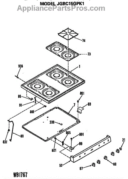 Parts for Ge JGBC15GPK1: Cooktop Parts