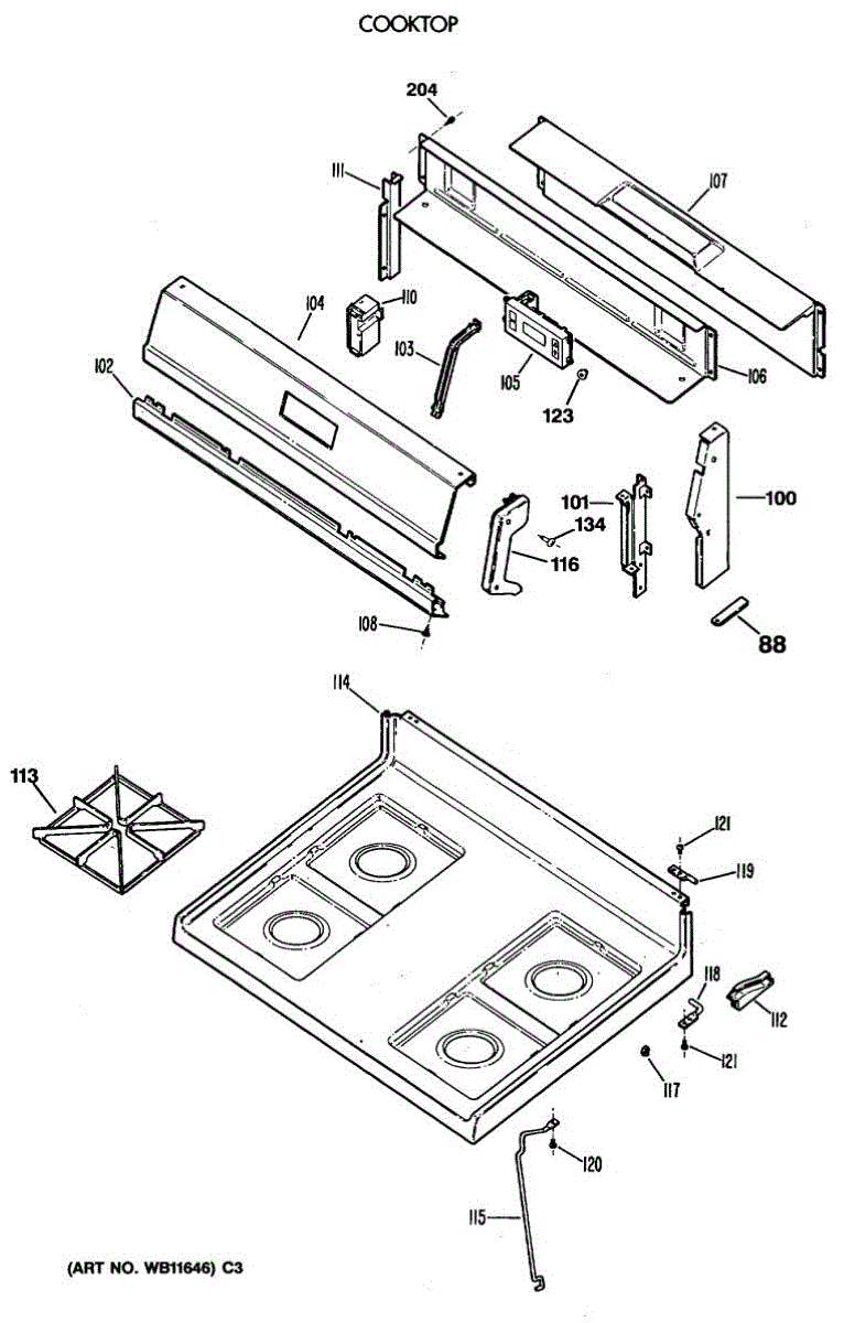 Factory screw secures brackets, panels, trim, or burner components on ranges, cooktops, and wall ovens. Replaces missing, stripped, or corroded fasteners.