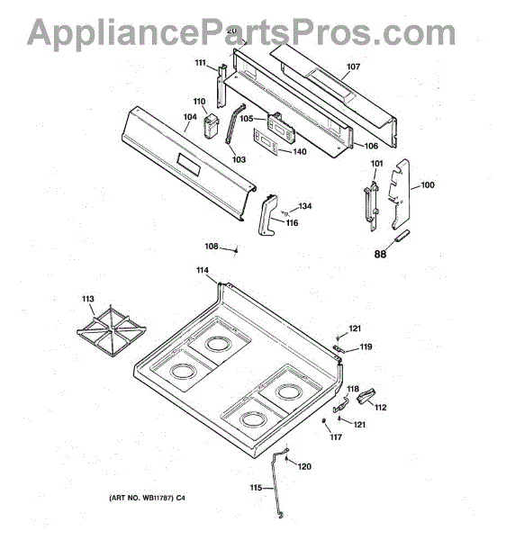 Parts for Ge JGBC20BEA1AD: 02 - Cooktop Parts
