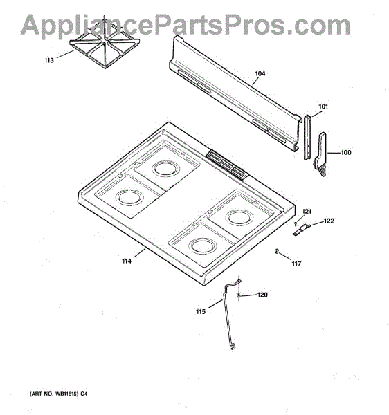 Parts for Ge JGBS02PPA5WH: 02 - Cooktop Parts
