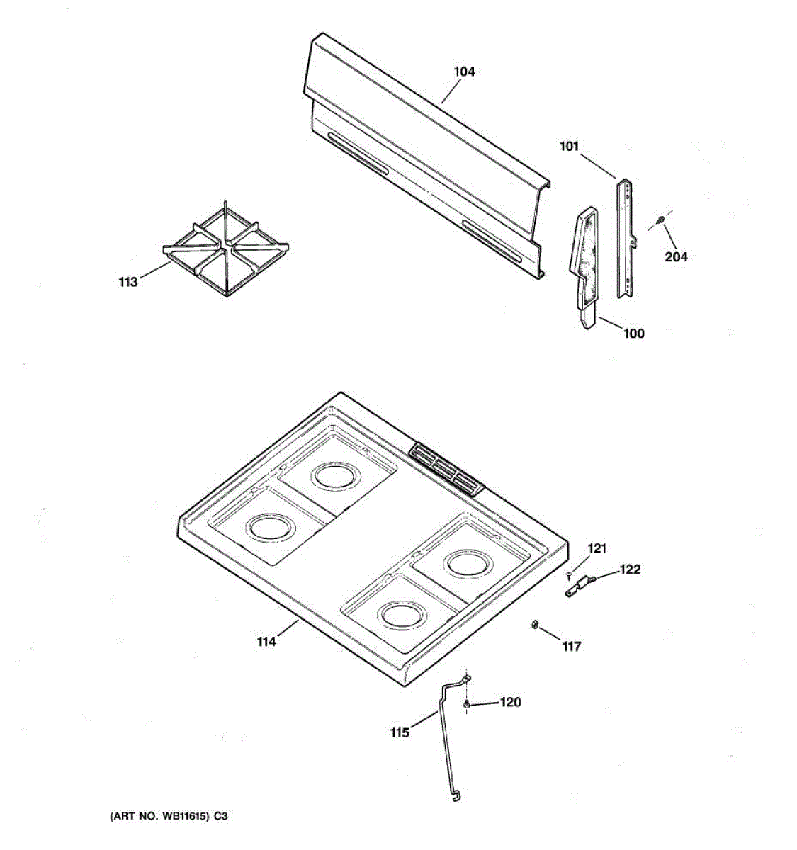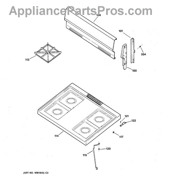 Bisque metal cooktop panel that covers the top of your gas range. Replace this flat cooktop if yours is rusted through, cracked, or damaged beyond repair.